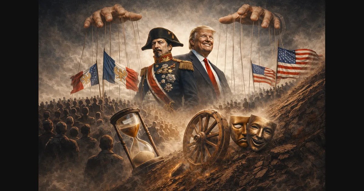 Ove je rečenice napisao Karl Marx u svojemu Osamnaestom brumaireu Louisa Bonapartea — djelu koje je i danas iznimno relevantno. Ono je nastalo sredinom devetnaestog stoljeća te je, između ostalog, ponudilo analizu i objašnjenje okolnosti koje su omogućile dolazak Bonapartea na vlast. Louis Bonaparte, nećak slavnog Napoleona I., godinama je vjerovao da mu je sudbina namijenila vlast u Francuskoj. Nakon neuspjelih pokušaja puča, zatvora i egzila, dočekao je priliku u Revoluciji 1848., koja je srušila monarhiju i uvela Drugu Republiku. Iskoristivši slavno prezime, nostalgiju za Napoleonovom slavom te obećanja reda, stabilnosti i socijalne brige u vremenu političke i gospodarske nesigurnosti, uvjerljivo je pobijedio na predsjedničkim izborima iste godine. No, kako mu je ustav dopuštao samo jedan četverogodišnji mandat, najprije je pokušao legalno izmijeniti njegove odredbe, a kada u tome nije uspio, odlučio je djelovati silom. Dana 2. prosinca 1851. proveo je državni udar, raspustio skupštinu i ukinuo ustavni poredak. Godinu dana kasnije proglasio se carem Napoleonom III., čime je Republiku pretvorio u Drugo Carstvo. No, taj novi poredak nije počivao samo na simbolima, već i na stalnim vojnim pustolovinama koje su, pod krinkom nacionalne slave, osiguravale izravan materijalni dobitak financijskoj eliti i industriji u usponu. Ratovi koje je vodio bili su proračunat spektakl koji je krvlju sirotinje hranio trezore bogatih, učvršćujući tezu da je mir samo pauza u akumulaciji kapitala.